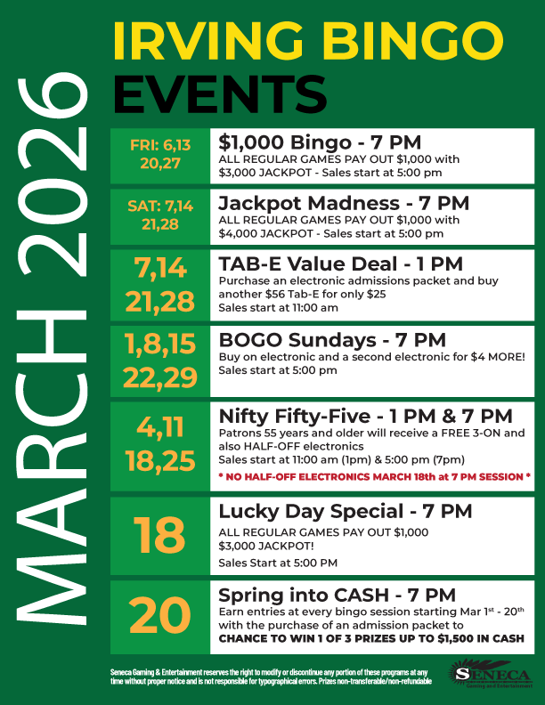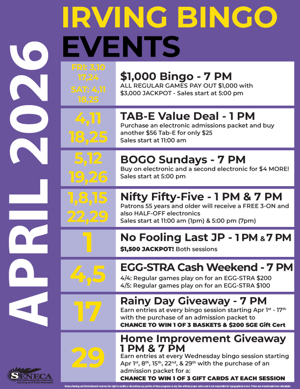 You can’t find a better spot to play bingo in Irving, NY than Seneca Gaming & Entertainment. You won’t regret visiting us for bingo because...