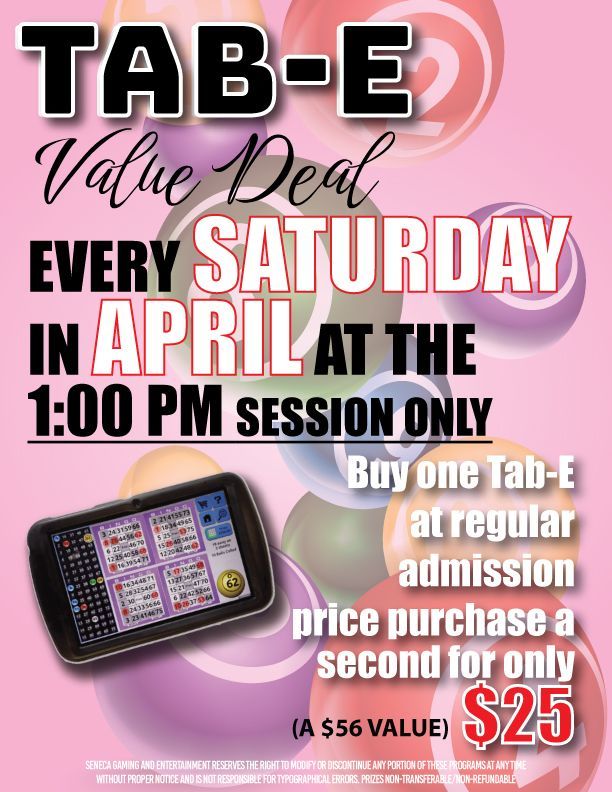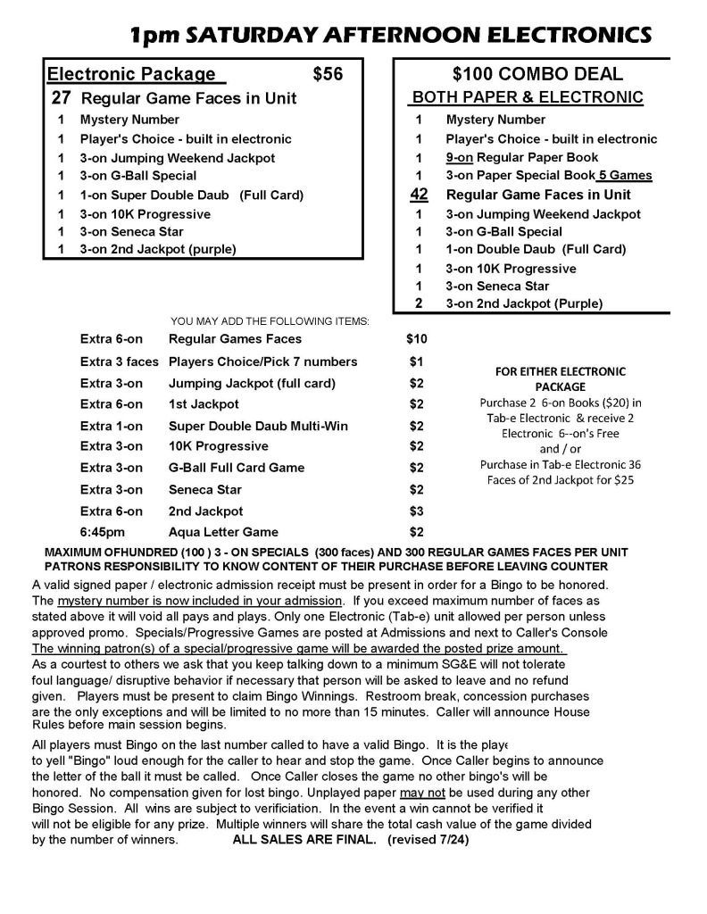 | 1pm Saturday Bingo | $32 Admission | $56 | $500 | $1,199 |