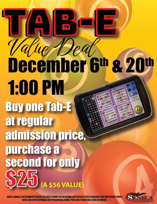 A paper or electronic purchase required to participate in a bingo session. The admission or (Buy-In) can be purchased at the main Bingo Hall entrance located at the front.