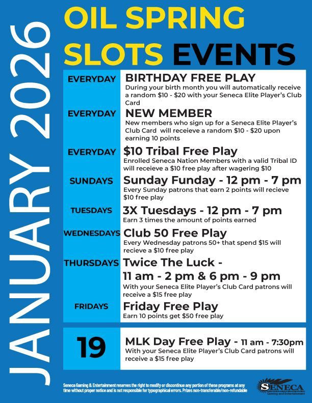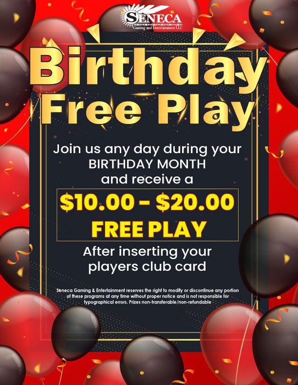 At Seneca Gaming & Entertainment, we are always looking for more ways to reward our loyal players with special events, promotions and fantastic customer service! If you aren't a member of our online Players Club, sign up today!