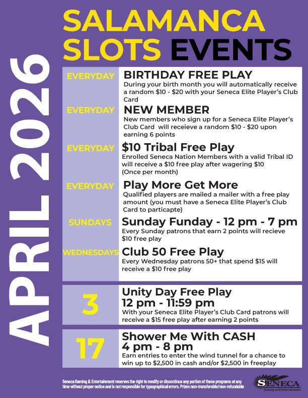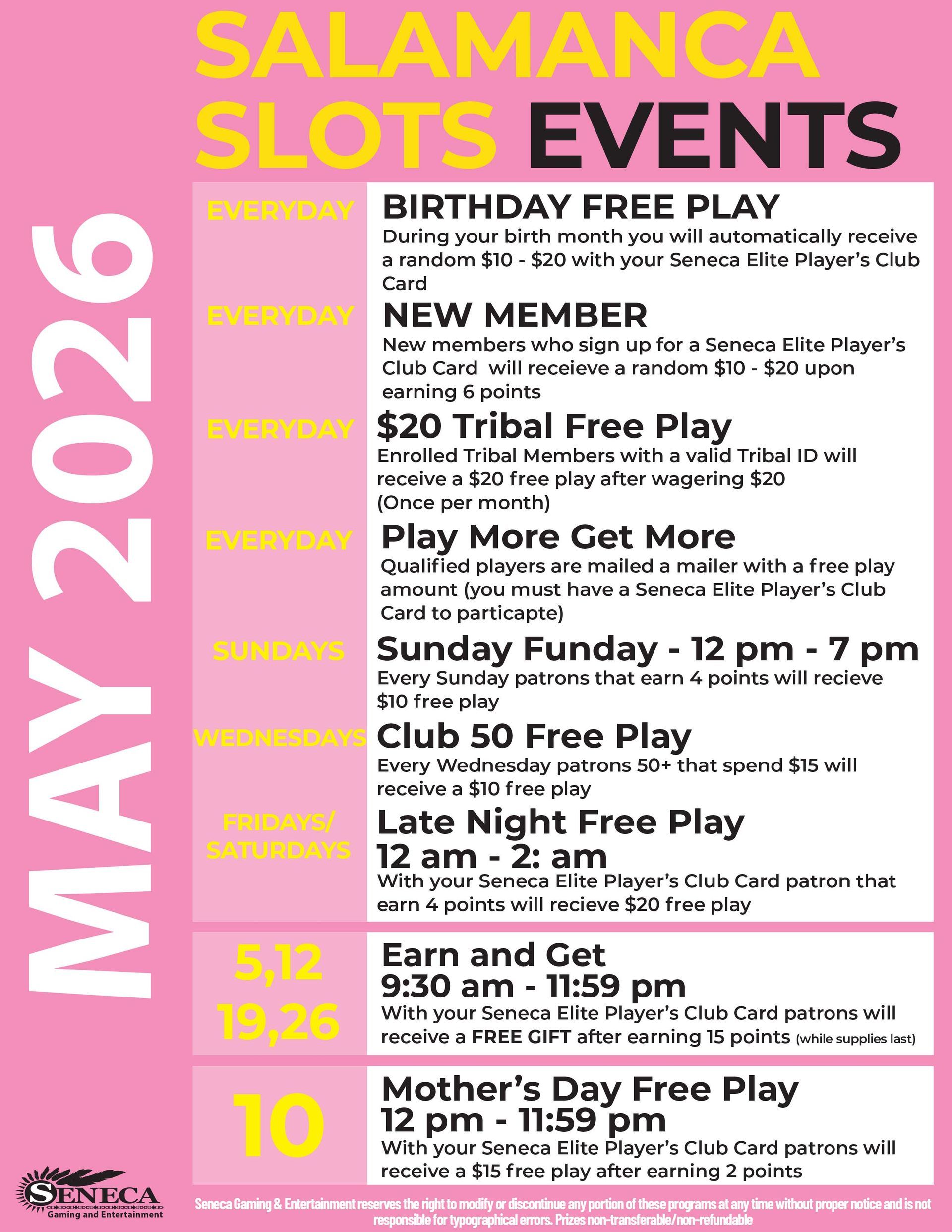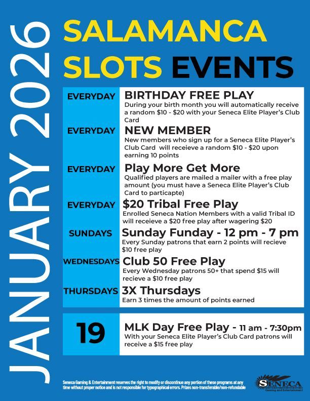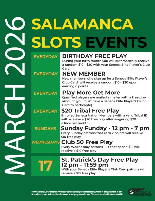 At Seneca Gaming & Entertainment, we are always looking for more ways to reward our loyal players with special events, promotions and fantastic customer service! If you aren't a member of our online Players Club, sign up today!