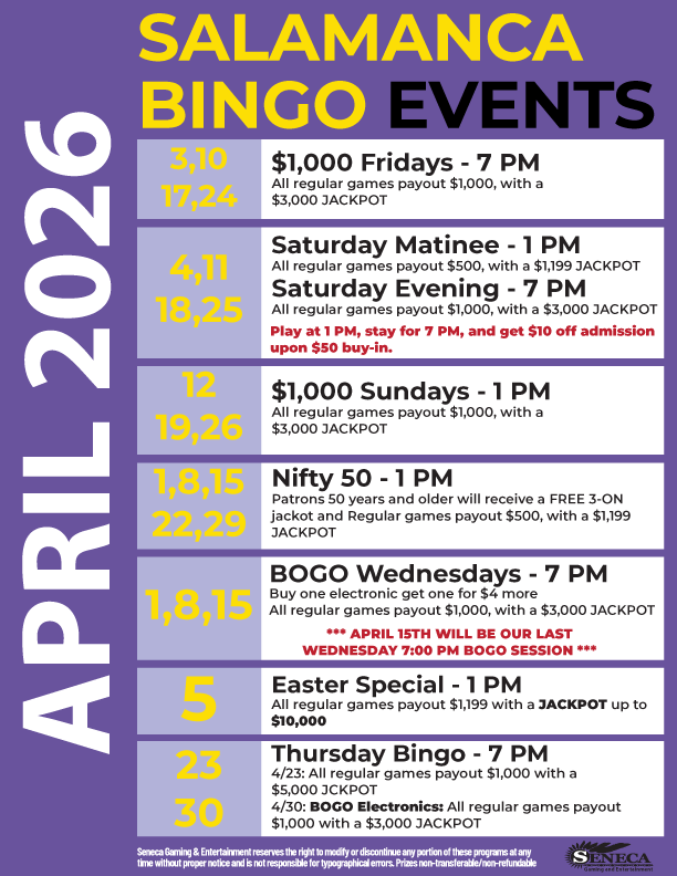Seneca Gaming and Entertainment in Salamanca, NY, is the best place for High Stakes Bingo in Western New York! We offer the highest bingo payouts in the region with thousands paid out every session!