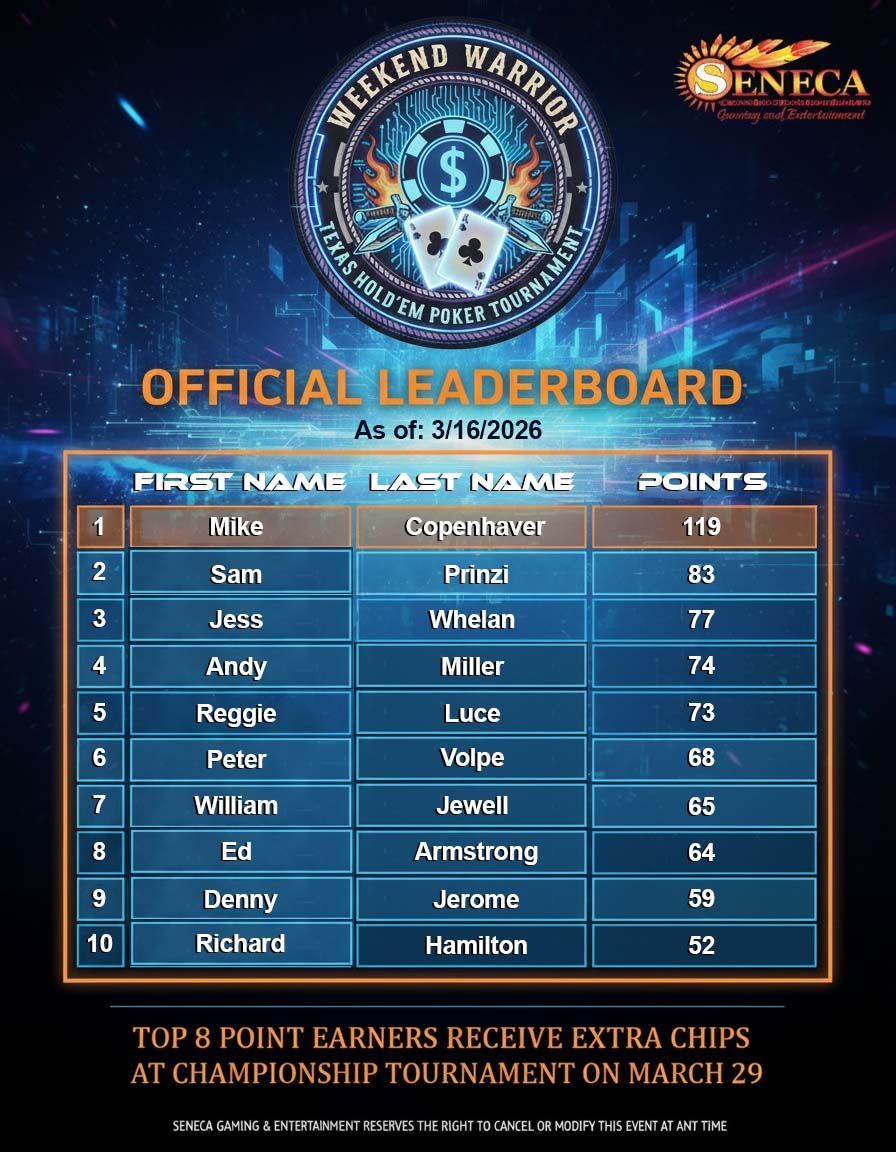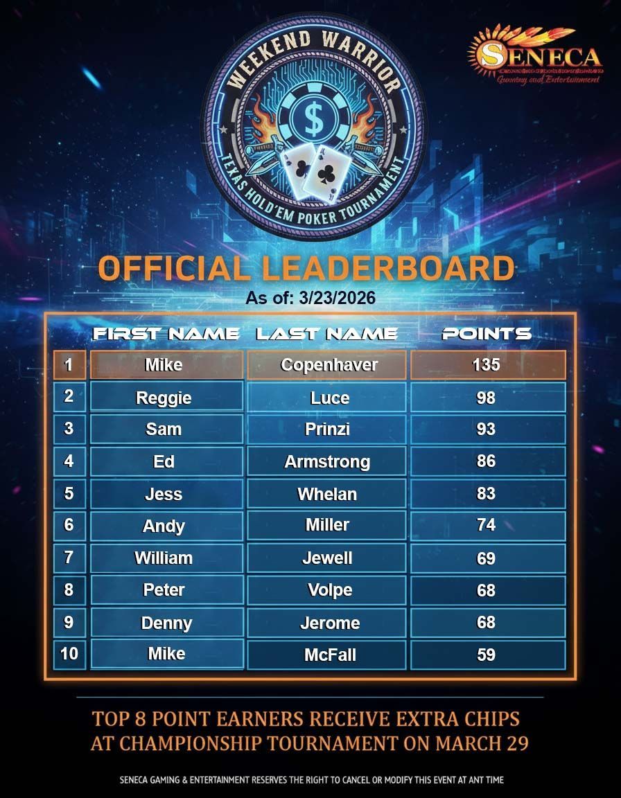 At Seneca Gaming & Entertainment, we are always looking for more ways to reward our loyal players with special events, promotions and fantastic customer service! If you aren't a member of our online Players Club, sign up today!